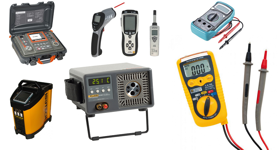Multimètres, mesureurs de resistances et d'isolement, de continuité, thermomètre, chaîne de température,appareil spécifiques sur demande etc